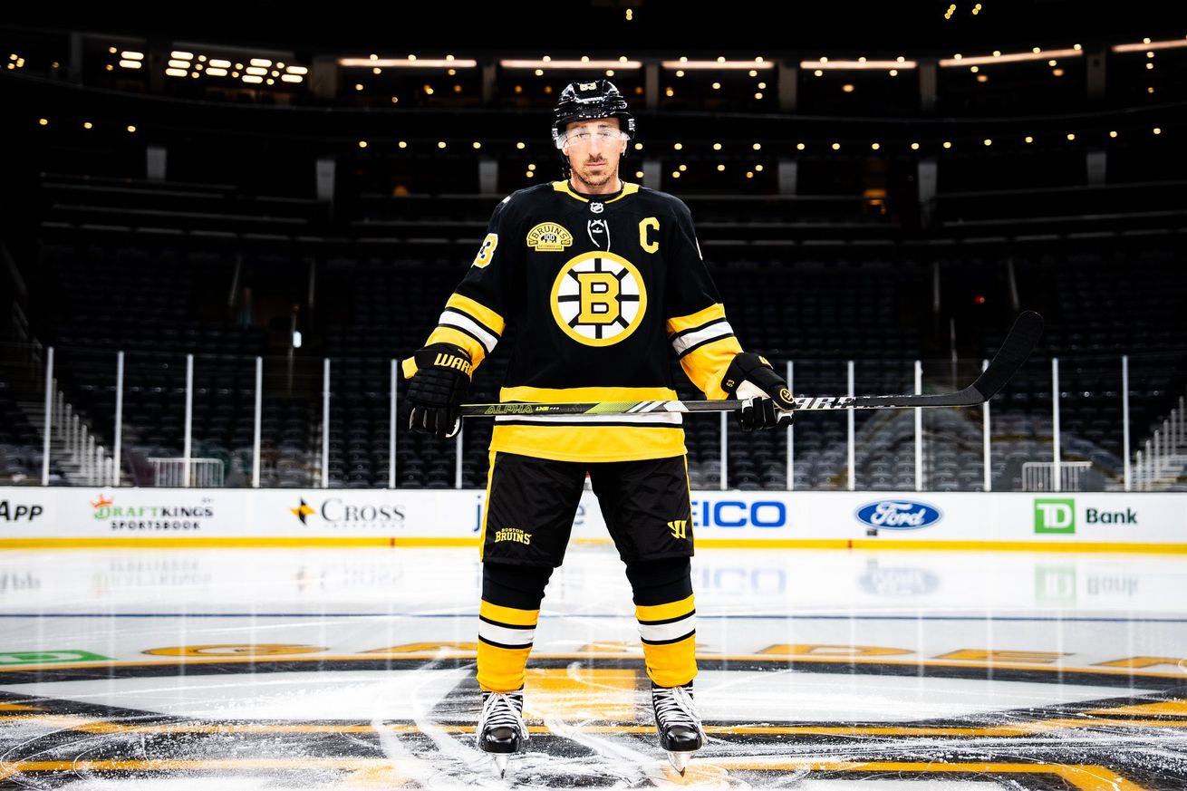 “The jersey design draws inspiration from the 1980s, a pivotal era in Bruins history that embodies the team’s core values. The uniform kit features dipped gold sleeves and socks with a modern take on traditional striping, paying tribute to Bruins alumni who previously repped the Spoked-B.”