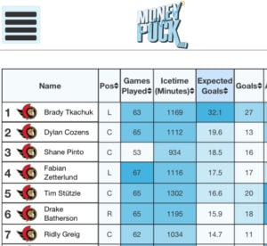 On the season, in 65 games, Cozens has 13 goals, 22 assists, and 35 points. This total would have him seventh on the current Sens roster in points. (Interestingly enough, one point behind fellow newcomer Fabian Zetterlund.) Another statistic that shows Cozens’ value (and Zetterlund’s, too) is expected goals. This was a focus of the off-season player additions. Michael Amadio, Nick Cousins, and David Perron were all strong in that statistic last year. Therefore, from a statistical standpoint, it’s easy to why Cozens would potentially fit and play an impactful role with the group.