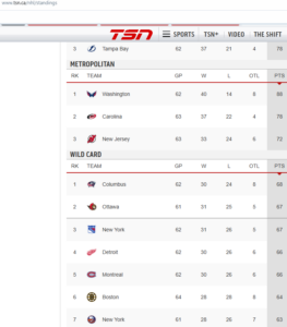 The Ottawa Senators are a very strong team. They are ahead of the Rangers in the standings.
