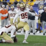 Charles LeClaire-USA TODAY Sports BC’s kicking game... is actually fine? Kicking Liam Connor will return in 2024 for his third season on the Heights and now his second full season as Boston College’s field goal kicker. The Leominster, MA native was very solid for the Eagles in his first year as a starter in 2023, going 36/39 on PATs and 11/14 on FGs. All three of his … [Read more...] about Boston College Football Special Teams Preview 2024