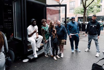 But the dozens and dozens of Celtics fans in attendance who lined Canal Street on a gloomy Saturday afternoon in Boston were unfazed, sporting a poncho or carrying an umbrella, and patiently waiting for the opportunity to meet Jaylen Brown.