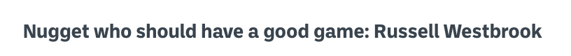 Nuggets going with Westbrook, Murray, Braun, Porter, Jokic tonight.