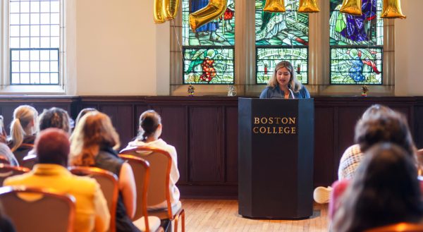 Maynard also introduced Paola Cisneros Lau, assistant director of education and training initiatives at the Women’s Center and chair of Latino/as @ Boston College, a community engagement group, as an additional campus resource for Hispanic students.