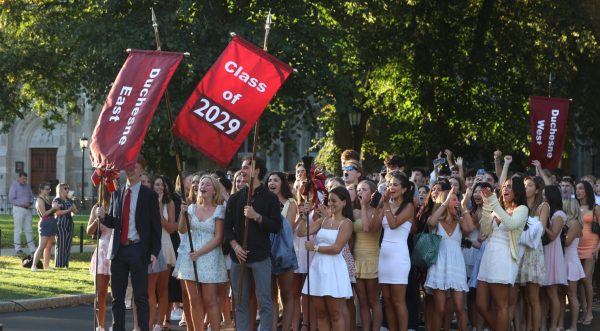 A sea of freshmen in summery dresses and pressed khakis filed down Linden Lane Thursday evening, chatting with each other as they made their way to Conte Forum for the 2025 convocation.