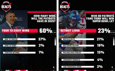 With Super Bowl LX less than a year away, Patriots fans have the Detroit Lions as a narrow early favorite to win. They received 23 percent of the vote, with the Buffalo Bills just behind them at 21 percent. The Baltimore Ravens were next up at 18 percent, with the Philadelphia Eagles repeating at 15 percent.