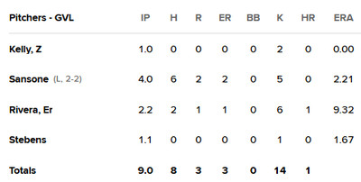 In the fourth, Nathan Hickey added a two-run shot, his twelfth home run of the season, followed by an RBI double by Corey Rosier to open the lead up to 4-0. Hickey and Rosier were both 2-for-3. That was all that Cooper Criswell needed, spinning five shutout innings, allowing just two hits, and striking out six. He improved to 4-2 with a 3.32 ERA.