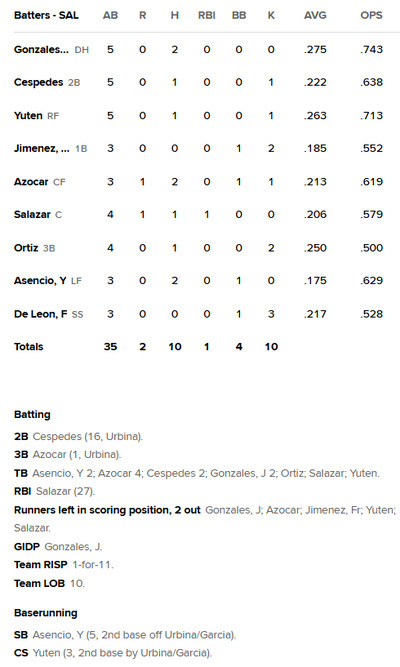 Justin Gonzales, Enddy Azocar, and Yosander Asencio all had multiple hits in the game for Salem.